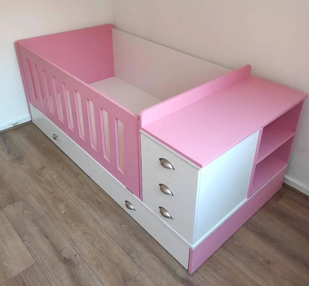 Hermosa cama cuna convertible para bebe, multifuncional para ocuparla luego que el bebe crece, si deseas modificar color y medidas, se puede realizar con un costo adicional; además su instalacion es gratis en todo Santiago y se realizan envios a todo Chile. Tambien puedes revisar diversos productos para tu hogar.