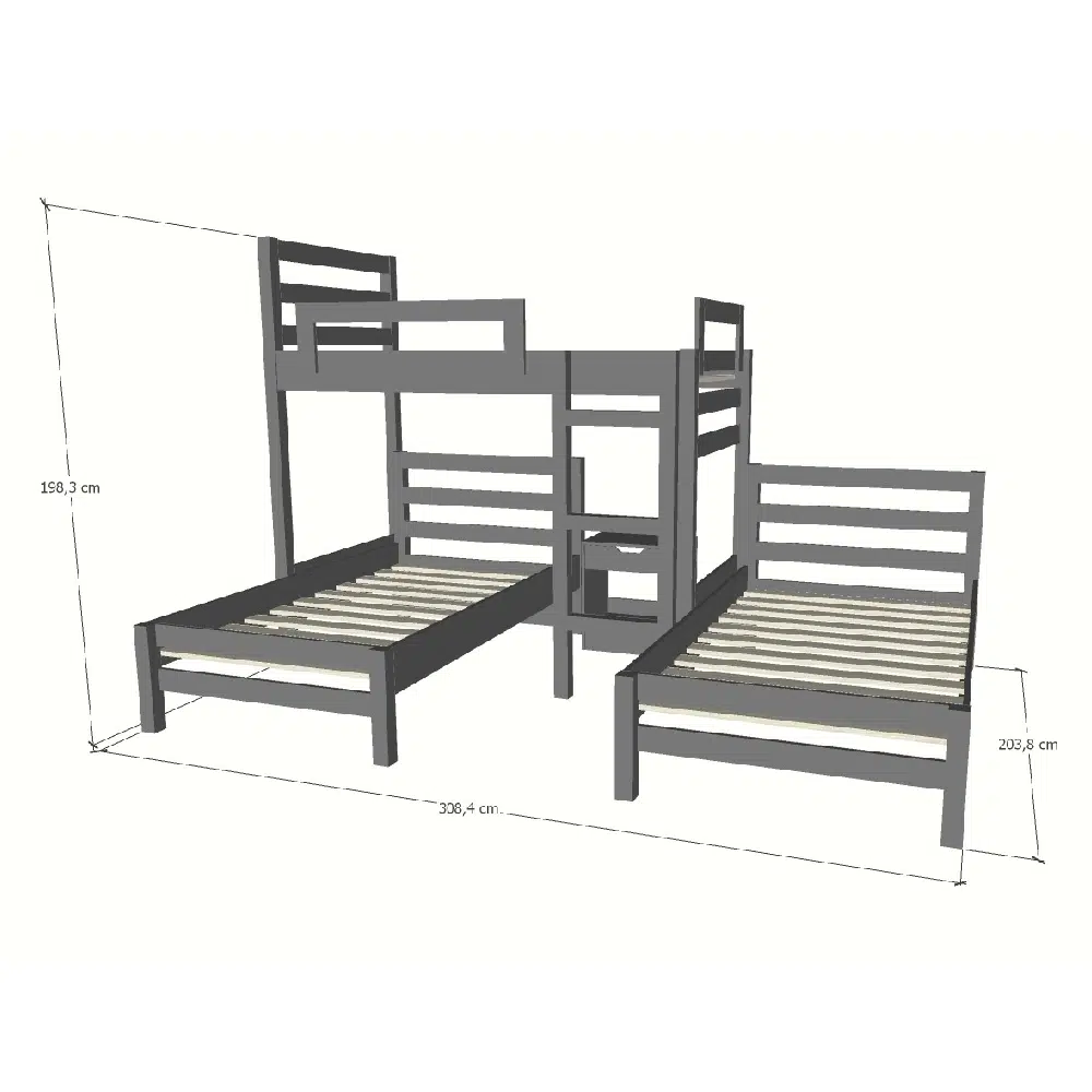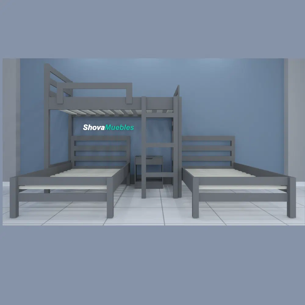 Un camarote tres camas de pino en color gris oscuro, ideal para los consentidos de casa, si deseas personalizar el color o medida, se puede realizar con un costo adicional, además puedes revisar diversos productos para renovar los muebles para tu hogar y tambien se hacen envíos a todo Chile.