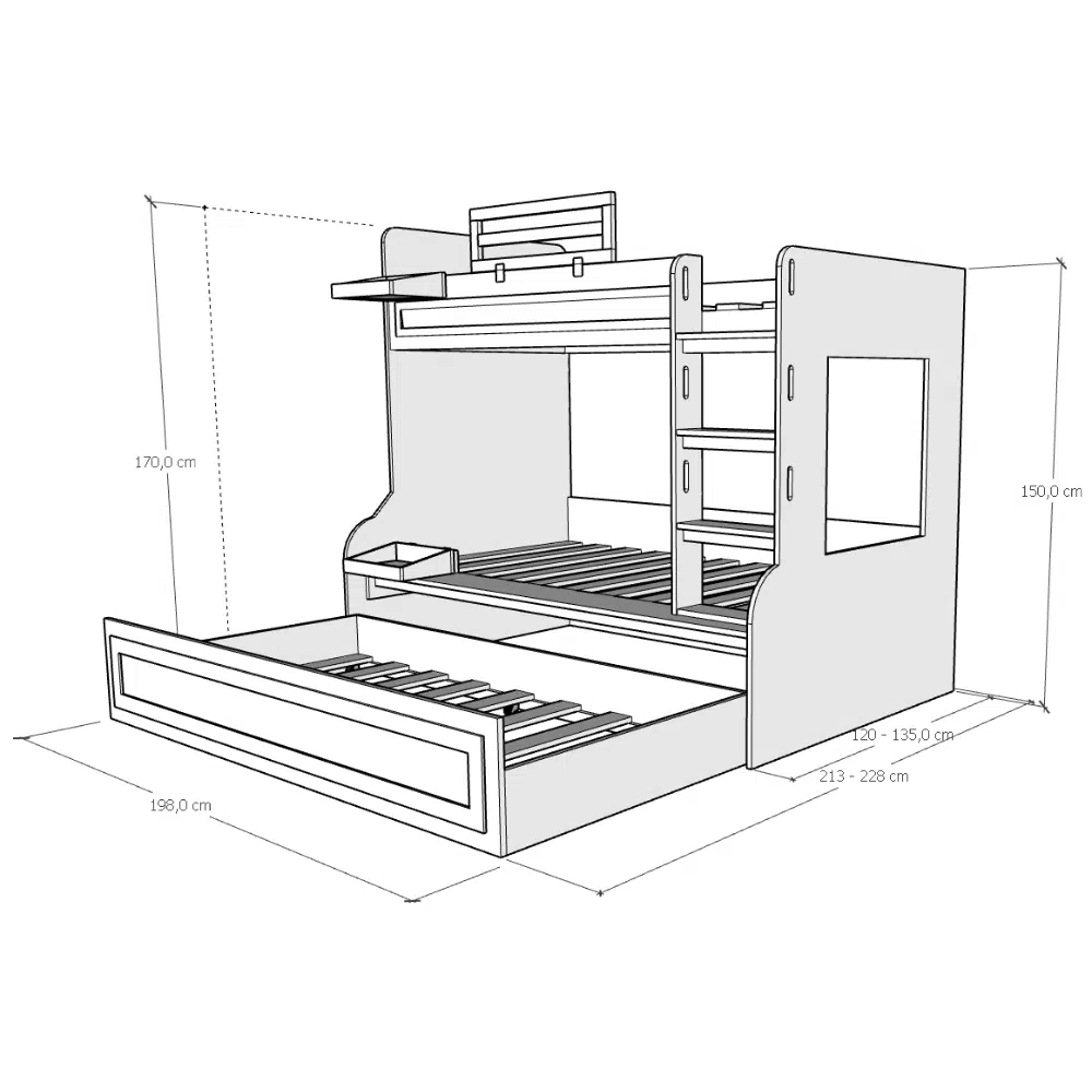 - Profundidad 120 o 135 cm según la cama sea de 1 o 1 plaza y media