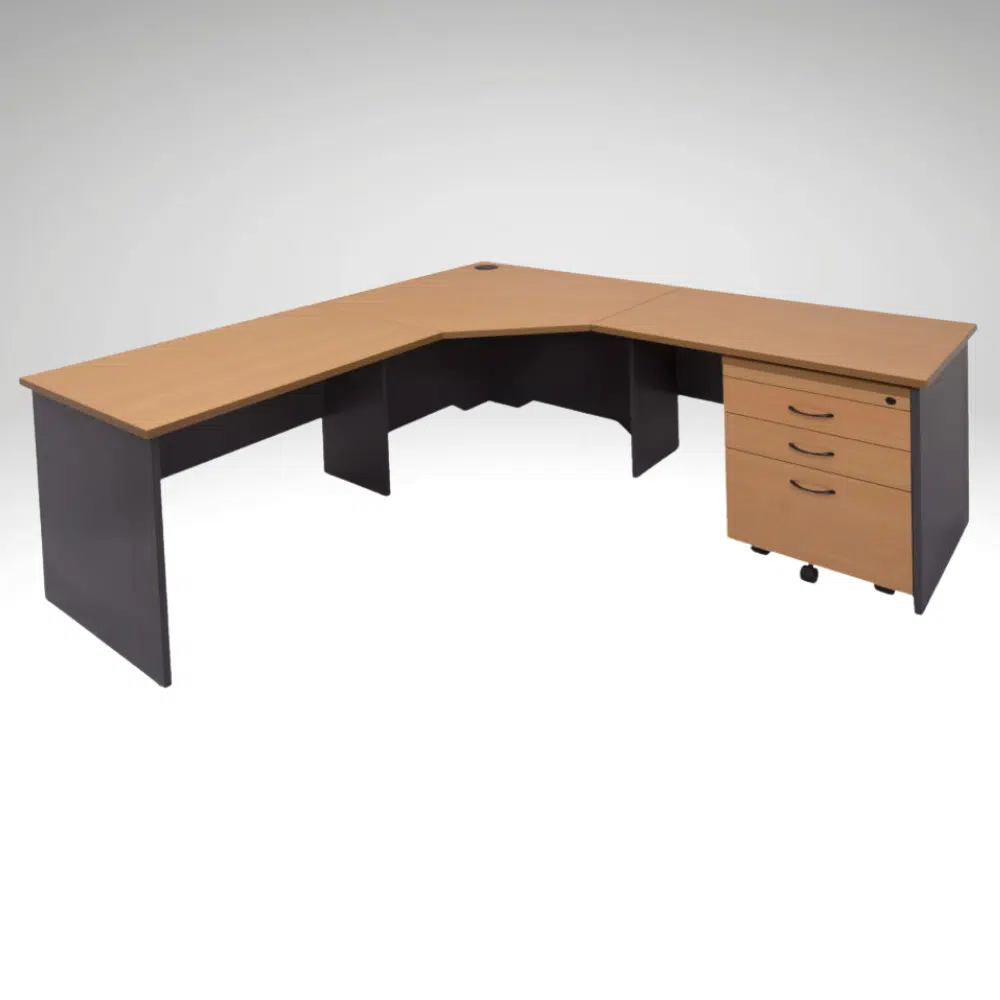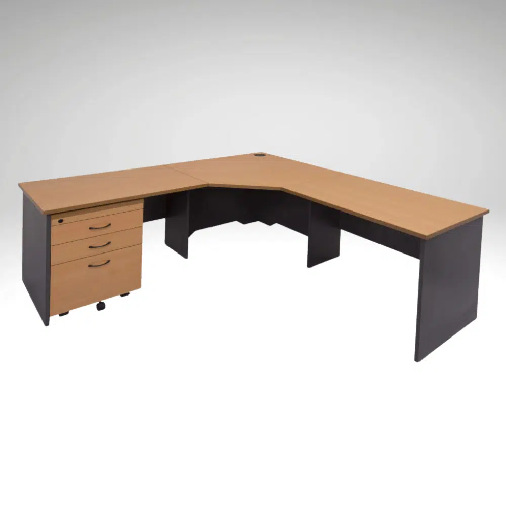 Mueble escritorio cubierta en color coigue y base de color grafito, diseño funcional y elegante para oficinas, con cajonera movible, puedes personalizar las medidas  y color con un costo adicional, contáctanos.