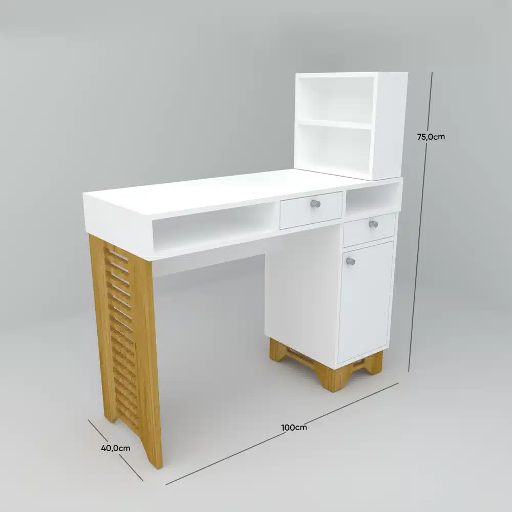- Medidas mesa: alto 75 cm, ancho 100 cm, profundidad 40 cm.