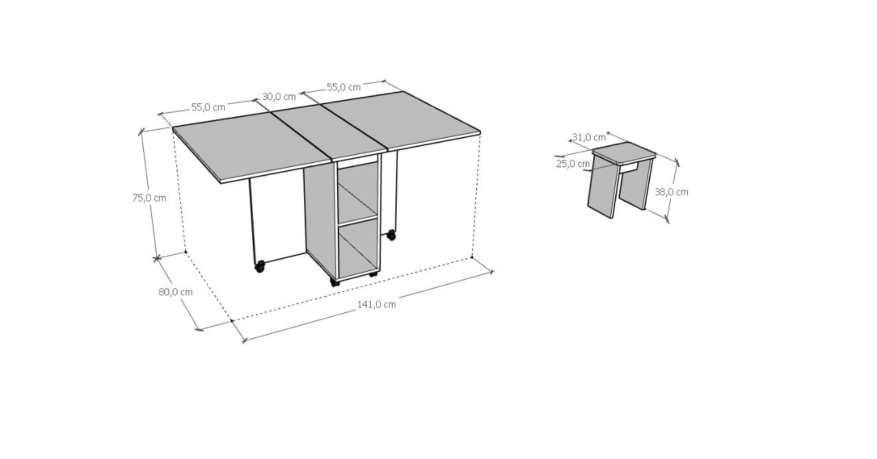 Mesa plegable práctica y funcional para espacios pequeños o reducidos para diferente área de hogar o comercios, se realizan envíos todo Santiago y regiones.