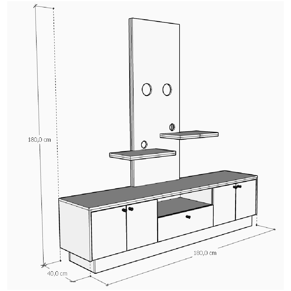 - Medidas: alto 180 cm, ancho 180 cm, profundidad 40 cm.