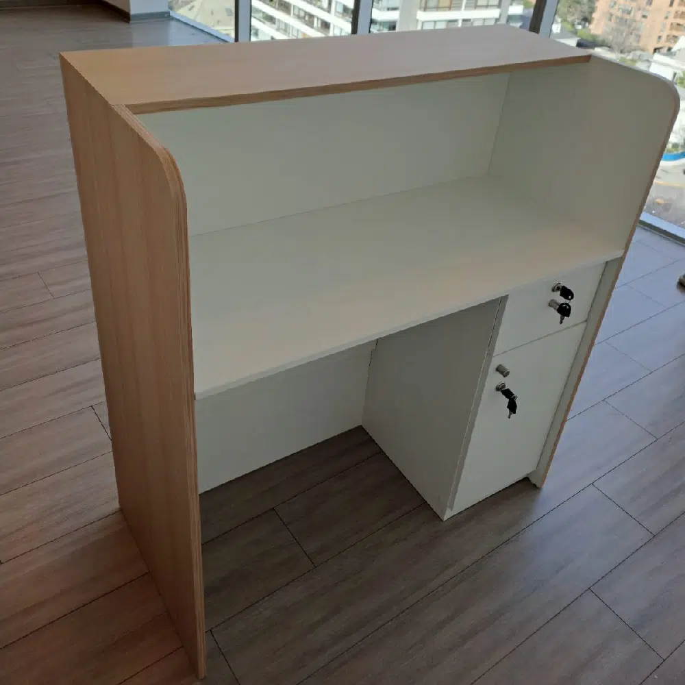 Una recepción caja para el área comercial, de diseño elegante ideal para tu empresa, si deseas personalizar el color y medidas se puede realizar con un costo adicional, su instalación es gratis en todo Santiago y se realizan envios a todo Chile; el mueble tiene garantía por defecto de fabricación (no incluye por golpes, raspones o mal uso). Tambien puedes revisar diversos productos para implementar tu negocio.