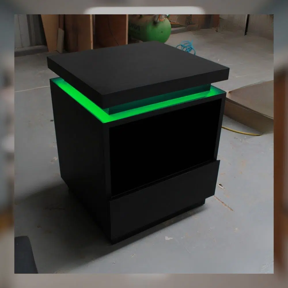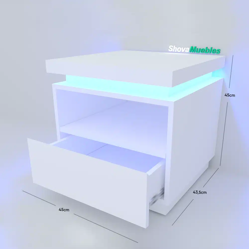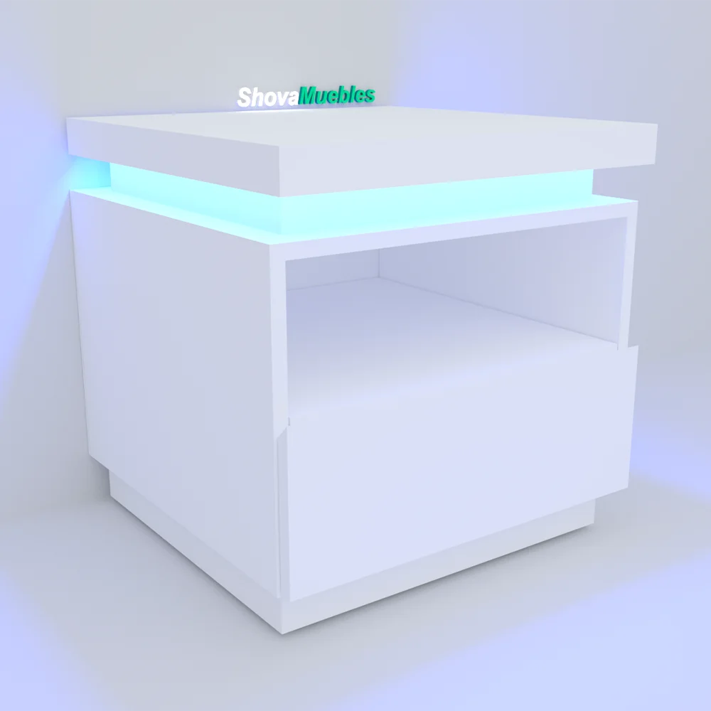 Hermoso velador de noche con luz led de diseño elegante fabricado en melamina, si deseas personalizar los colores y medidas, se realiza con un costo adicional; tambien puedes revisar variedad de modelos pára implementar tu hogar; además realizamos envios a todo Chile.